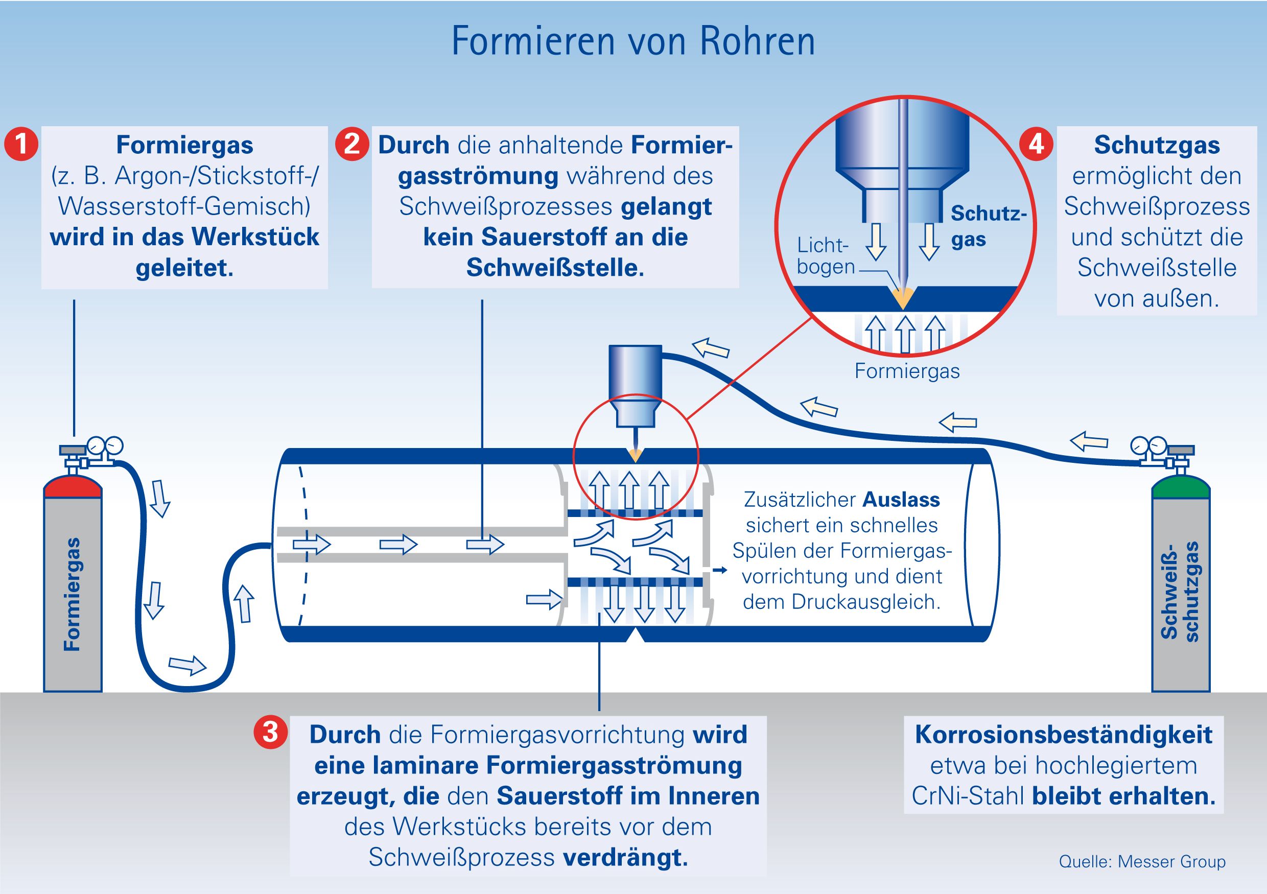 La protection des racines et le former des tuyaux ou des récipients servent à garantir la qualité lors du soudage. Pendant la protection de la racine, le gaz de protection (formiergaz) circule autour de la racine du cordon de soudure et de la zone affectée par la chaleur et, en même temps, l'atmosphère contenant de l'oxygène est déplacée afin d'assurer la résistance à la corrosion des matériaux sur une longue période. Sans formation, la racine et la zone affectée par la chaleur s'oxyderaient en raison de l'oxygène présent et une reprise serait nécessaire.